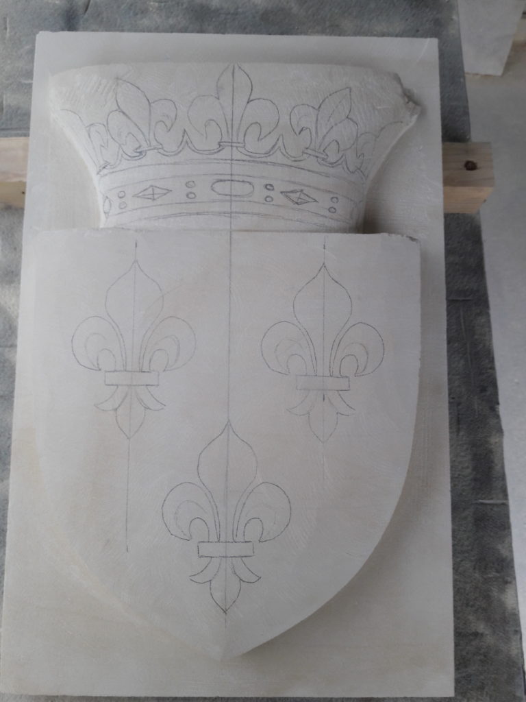 Ornementation Réalisation d’un Blason en Pierre de Caen Réalisation d’un bas relief de Guillaume le Conquérant Bouclier Guillaume Le Conquérant
